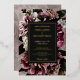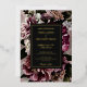 Esta hermosa, oscura y monótona tarjeta de invitación a la boda floral incluye una impresionante combinación de peonía, rosa, petunia y lila. Personaliza con tus propios detalles.