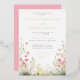 Este diseño presenta un ilustracion de delicadas flores silvestres y mariposas en tonos rosas y verdes.