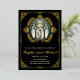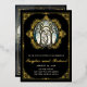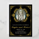 Invitación de bodas de época con adornos de Relieve metalizado dorado y nombres en la parte delantera. vidriera Art Nouveau con adornos dorados. Al revés de tu foto.
