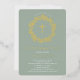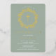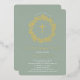 Hermosas invitaciones de confirmación de Relieve metalizado dorado con una delicada corona floral y una cruz sobre un sabio fondo verde. Invierta nuestra invitación para ver una coordinación de nuevo para un toque especial. Visite nuestra tienda para ver toda nuestra colección religiosa.