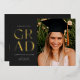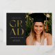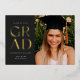 Celebra tu graduación con estilo con esta moderna invitación de graduación e invitación. Presenta la palabra GRAD en un elegante sans serif presionado con Relieve metalizado en el frente sobre un fondo oscuro, junto con espacio para una foto. La parte trasera de la invitación tiene espacio para una segunda foto así como para todos los detalles de tu fiesta de graduación.
