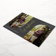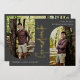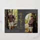Graduado. Guión moderno, en Relieve metalizado plateado. Invitación/invitación de graduación. Fotos de 2 arcos en la parte delantera, foto única en la parte posterior con colores de fondo gris oscuro.