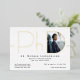 Una moderna invitación para una fiesta de graduación de doctorado con un esquema de Relieve metalizado dorado, negro y blanco. Celebra que estés hecho con esta elegante invitación. Simplemente agrega tu foto e información, agrega esta invitación a tu carrito, y celebra este gran logro. Moderno Relieve metalizado de posgrado de Oro PhD Invitación al diseño de vacaciones | ©Melissa Patton - Diseñador