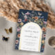 Invitación al Relieve metalizado de la Invitación a la Boda Azul de la Marina. Esta elegante y elegante invitación al Relieve metalizado boho arch boda cuenta con hermosas acuarelas pintadas a mano y flores silvestres dispuestas como un marco encantador. En la parte trasera hay un bonito ramo de coordinación con un monograma para la novia y el novio. Encontrar elementos coincidentes en la colección de Bodas de Flor Silvestre Boho Azul de la Marina.