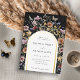 Invitación al Relieve metalizado de Invitación a la Boda de Arco Negro. Esta elegante y elegante invitación al Relieve metalizado boho arch boda cuenta con hermosas acuarelas pintadas a mano y flores silvestres dispuestas como un marco encantador. En la parte trasera hay un bonito ramo de coordinación con un monograma para la novia y el novio. Encontrar elementos coincidentes en la colección Boda Black Boho Wildflower.