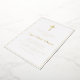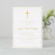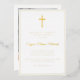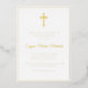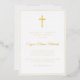 Una moderna tarjeta de invitación a la primera comunión con cruz de Relieve metalizado dorado. Los colores y el texto se pueden personalizar.