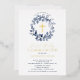 Hermosas invitaciones de Relieve metalizado dorado First Communion con una suave corona azul de hojas y cruz sobre un fondo blanco. Invierta nuestra invitación para ver una coordinación de nuevo para un toque especial. Visite nuestra tienda para ver toda nuestra colección de hojas.