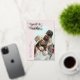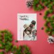Tarjeta de agradecimiento retro boda con un texto que dice "amor y agradecimiento" en oro con un marco en arco alrededor de tu foto. Puede añadir una segunda foto en la parte posterior.