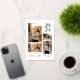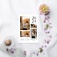 Una moda y una invitación de graduación mínima mostrando cuatro de tus fotos favoritas. Esta invitación a graduarse definitivamente destacará con el año de graduación impreso en Relieve metalizado real. El Relieve metalizado tiene tres colores: oro, plata o oro rosa. En la parte trasera hay otra foto, con mucho espacio para los detalles de tu fiesta de graduación. Este diseño moderno irá bien con cualquier tipo de fotografía.