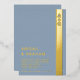 Añada un toque de modernidad a su día especial con esta invitación audaz e intemporal que presenta una impresionante tipografía de Relieve metalizado de oro real, un monograma boda personalizado y un Relieve metalizado de oro real sobre un polvoriento fondo azul. Esta invitación a la boda tendrá a sus invitados en el asombro de su gran día antes incluso de haber dicho, ‘lo hago’.