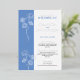 Diseño de flores de Relieve metalizado plateado con foto azul Invitación a la boda. Diseño sencillo y elegante, listo para su personalizar con su propia foto y detalles de su día especial.