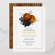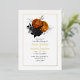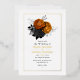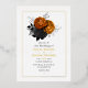 Invitación a la boda floral de color negro y dorado con reverso grunge. Ten en cuenta que los florales no son un Relieve metalizado real.