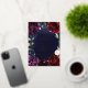 Invitación a una boda de la marina borgoña con una escena de watercoloreado pintado de peonías borgoñas y azul marino con acentos dorados brillantes contra un fondo de acuarela marina profundo. Esta versión está en RELIEVE METALIZADO DORADO así que todos los elementos dorados tienen oro de Relieve metalizado real.