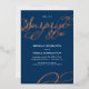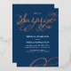 Esta moderna y elegante invitación a la fiesta de cumpleaños número 80 incluye las palabras "sorpresiva 80" en Relieve metalizado dorado con un diseño giratorio a juego en la esquina inferior derecha sobre un fondo azul marino (que puede cambiarse a cualquier color que elija). Personalizar esta invitación de moda con el nombre y la información fiesta.