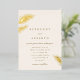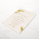 Una hermosa y formal invitación a la boda con elementos de pino de Relieve metalizado dorado. Ideal para un boda clásico con un toque moderno y rústico.
