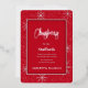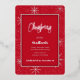 El texto de vacaciones plateadas con copos de nieve de diseño único son las características de esta invitación festiva de fiesta. Y por supuesto, ¡el fondo es de un color rojo alegre! Su información está en una "caja de sombra" enmarcada con Relieve metalizado plateado. Comience su planificación de eventos con invitaciones llamativas.