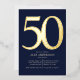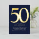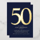 Ayude a que las celebraciones empiecen con estilo con esta invitación a la fiesta de Relieve metalizado de 50 años que puede ser personalizada para incluir los detalles de su fiesta de cumpleaños. El diseño es moderno, elegante y clásico en azul medianoche.