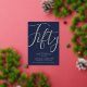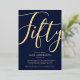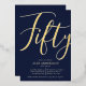 Ayude a que las celebraciones empiecen con estilo con esta invitación a la fiesta de Relieve metalizado de 50 años que puede ser personalizada para incluir los detalles de su fiesta de cumpleaños. El diseño es moderno, elegante y clásico en azul medianoche.