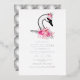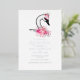 Invitación de la quinceanera con temática de cisne rosa y plateado diseñada para ser rápida y fácilmente adaptada a las especificaciones de tu evento.