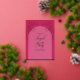 Sencilla y delicada rosa floral boda rojo invitación al Relieve metalizado. Sólo cambia el texto para adaptarlo a tus necesidades. Utilice la plantilla para personalizar.
