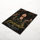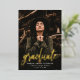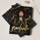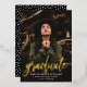 Simple invitación de graduación con la foto del graduado con "graduado" en escritura de Relieve metalizado de oro real. Personalice la parte delantera de la invitación de graduación fotográfica añadiendo el nombre del graduado, el nombre de la escuela y el año de graduación. La invitación se invierte para mostrar un patrón de rociadores blancos con un fondo negro o color de su elección.