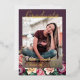 Relieve metalizado de oro único y de moda felicitaciones a graduados de invitación y fiesta de celebración carta de invitación enmarcada con un hermoso manantial color rosa de malva pastel taupe color rosa y corona floral de verano en un fondo clásico de moda de color violeta oscuro profundo oscuro. Con espacio para el personalizar o personalización con una foto, el nombre del graduado, el año de graduación de clase, la escuela secundaria, el futuro nombre de la universidad o universidad, e información sobre eventos de fiestas de celebración. Que la familia, amigos y vecinos sepan que hay un feliz graduado listo para conquistar el mundo, ¡e inviten a todos a venir a celebrar el feliz evento contigo!