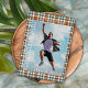 Único y moderno Relieve metalizado de plata felicitaciones para graduados invitación y carta de invitación a fiestas de celebración, enmarcado con un elegante fondo tartán de color azul, marrón y blanco. Con espacio para el personalizar o personalización con una foto, el nombre del graduado, el año de graduación de clase, la escuela secundaria, el futuro nombre de la universidad o universidad, e información sobre eventos de fiestas de celebración. Que la familia, amigos y vecinos sepan que hay un feliz graduado listo para conquistar el mundo, ¡e inviten a todos a venir a celebrar el feliz evento contigo!