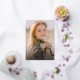 Única y moderna foto completa felicitaciones a los graduados por invitación y fiesta de celebración, carta de invitación, enmarcada con un elegante marco de Relieve metalizado dorado amarillo y una elegante tipografía. Con espacio para el personalizar o personalización con una foto, el nombre del graduado, el año de graduación de clase, la escuela secundaria, el futuro nombre de la universidad o universidad, e información sobre eventos de fiestas de celebración. Que la familia, amigos y vecinos sepan que hay un feliz graduado listo para conquistar el mundo, ¡e inviten a todos a venir a celebrar el feliz evento contigo!