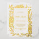 A soft ivory colored background decorated with real gold foil botanical pattern and text.