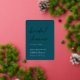 Invite a los huéspedes a celebrar a la novia con estas invitaciones modernas y mínimas a la ducha de novias con impresionantes acentos de Relieve metalizado de oro rosa. El diseño sencillo incluye "ducha de novias" en escritura casual manuscrita sobre un fondo verde oscuro y monótono de joyas, con los detalles del evento alineados en la parte inferior izquierda con letras modernas y blancas.