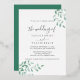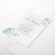 Perfecto para un boda de inspiración bohana, esta elegante y rústica invitación destaca por sus ricas hojas de color verde esmeralda y sus eucaliptos, que evocan un encanto de bosque moderno. La lujosa tipografía de Relieve metalizado dorado subió le aporta un toque de sofisticación a este diseño atemporal.