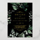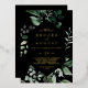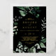 Este Relieve metalizado dorado de esmeralda negro invitación a una boda casual es perfecto para un boda boho. El diseño es elegante y rústico, con unas hojas de acuarela verde oscuro y un eucalipto con un toque bohemio moderno. Con Relieve metalizado de oro de lujo.