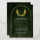 Invitación Con Relieve Metalizado Laurel Wreath deja oro de Boda verde oliva