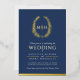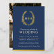 Invitación Con Relieve Metalizado Leaf línea de arte ovalada boda foto oro azul oscu