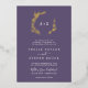 Este mínimo Relieve metalizado de color púrpura y dorado en una sola invitación a la boda es perfecto para un boda boho. El diseño de la joya tiene una sencilla silueta de hojas de vegetación en un violeta violeta azul oscuro con un estilo boho minimalista con lujosos toques de Relieve metalizado prensado. Personaliza con las primeras iniciales de la pareja. Guarde el papel incluyendo los detalles en la parte posterior de la invitación a la boda en lugar de en una tarjeta separada. Incluya también la información de RSVP si su invitado responderá electrónicamente (opcional).