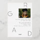 Esta atractiva invitación a la fiesta de graduación incluye una impresionante foto con un exclusivo borde ondulado, creando un ambiente lúdico y dinámico. Las letras "G R A D" son elegantemente Relieve metalizado presionado en puntos aleatorios a través de la tarjeta, añadiendo un toque de brillo y sofisticación. En la parte trasera, los detalles del fiesta se presentan cuidadosamente junto con una pequeña foto personal para hacer la invitación especial. Este diseño logra el equilibrio perfecto entre lo moderno y lo festivo, ideal para compartir su emocionante celebración de graduación con sus seres queridos.