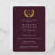 Una invitación formal pero moderna para celebrar a quienes obtienen títulos de derecho y calificaciones legales. Con el símbolo de la balanza de la ley, rodeado de una corona de laurel en un color de Relieve metalizado de su elección. El texto es personalizable, por lo que se puede cambiar el tamaño de la fuente, el estilo y la posición. La espalda se ha dejado en claro - agregar más información o un mensaje personal, o intercambiar por una foto del graduado. El diseño está disponible en otros colores e iteraciones de mi tienda, así como en una versión no-Relieve metalizado.