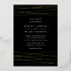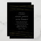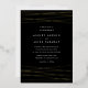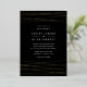 Limpio y moderno, nuestra minimalista invitación a la boda de Lination en blanco y negro de moda tiene un borde superior e inferior de líneas cruzadas de Relieve metalizado dorado sobre un fondo negro. Personalice los detalles de su boda con letras blancas modernas en una elegante combinación de correas séricas cursivas y sans serif.