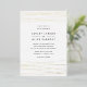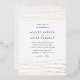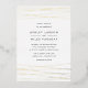 Limpio y moderno, nuestra invitación a la boda de Lination en blanco y negro de moda tiene un borde superior e inferior de líneas cruzadas de Relieve metalizado de oro. Personalice los detalles de su boda con letras negras modernas en una elegante combinación de correas séricas cursivas y sans serif. Las invitaciones se invitan a un gris muy pálido.