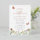 Esta elegante invitación a la ducha para bebés tiene flores naturales y un verdadero Relieve metalizado de oro subió. El dorso es un patrón de flores silvestres rosadas y a juego. Las mariposas agregadas y el texto del guión le dan un toque más jovial.