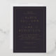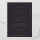 This elegant wedding invitation features a sophisticated design with a rich, dark background and gold accents that exude timeless elegance. The typography is classic and refined, adding to the formal yet warm atmosphere of the occasion. Perfect for couples seeking an understated luxury feel, this invitation sets the tone for a memorable celebration. With customizable text areas, it allows you to personalize every detail while maintaining its polished aesthetic.