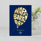 Invitación Con Relieve Metalizado Logo Lettering Balloon Navy Blue Business Birday