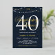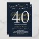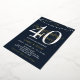 Invitación a la fiesta de aniversario de bodas número 40 en azul marino con detalles de foil blancos y dorados. Invitación de aniversario de bodas con luces de cadenas sin foto con los años que han estado casados en una fuente blanca y sus nombres en foil dorado. Invitación elegante de aniversario de bodas número cuarenta personalizada con sus nombres en foil dorado sobre un fondo azul marino.