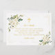 Invitación Con Relieve Metalizado Lujo Gracias Bautizo Flores Blancas Hoja de Oro