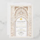 Invite a sus huéspedes a una boda verdaderamente elegante con esta lujosa invitación de boda de inspiración islámica. Con intrincados patrones florales y geométricos, esta invitación está adornada con opulentos acentos de Relieve metalizado dorado que resaltan el diseño detallado. En la parte delantera se exhibe un elaborado motivo de arco en tonos marfil, beige y oro suave, creando un estilo sofisticado y atemporal. La parte posterior continúa con el tema con un diseño floral sin fisuras y un monograma, lo que la hace perfecta para un boda refinado y memorable. Ideal para parejas que aprecian la belleza del arte y la arquitectura islámicas, esta invitación marca el tono para una gran celebración.
