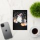 Esta invitación que incluye un fantasma lindo y un gato negro crea el ambiente perfecto para una fiesta de Halloween amada por niños y adultos.