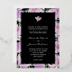 Elegantes magnolias florecientes en tonos violeta, lavanda y blanco enmarcadas en un verdadero Relieve metalizado de plata, estas invitaciones florales a la boda presentan los detalles de su boda con letras blancas de moda en un fondo negro. ELEMENTOS COINCIDENTES EN nuestra tienda.