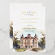 Fije el tono de su elegante boda con esta hermosa tarjeta de guardar la fecha con una acuarela de una casa señorial inglesa. La histórica casa de campo, rodeada de jardines y paisajes pintorescos, es el lugar perfecto para su boda de ensueño. Sus huéspedes estarán encantados de recibir esta tarjeta, que muestra la belleza y la grandeza de la finca que albergará su día especial. Los detalles intrincados y los colores vibrantes de las obras de arte harán de esta carta un placer para los años venideros.