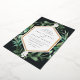 Escoja estas invitaciones botánicas de bodas ricamente coloreadas para elegantes bodas de invierno, nupcias de otoño o otoño, o bodas nocturnos en verano. El diseño de la moda combina elementos naturales y geométricos para un aspecto fresco y moderno. Los detalles de tu boda aparecen en ricas letras en negro sobre un elemento geométrico blanco con un borde de Relieve metalizado dorado, rodeado de follaje verde, hojas exuberantes y flores blancas pequeñas. Un fondo profundo e insignificante añade riqueza y drama. Artículos coincidentes disponibles en nuestra colección de Greenhouse.
