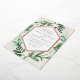 Escoja estas invitaciones botánicas de bodas ricamente coloreadas para elegantes bodas de invierno, nupcias de otoño o otoño, o bodas nocturnos en verano. El diseño de la moda combina elementos naturales y geométricos para un aspecto fresco y moderno. Los detalles de su boda aparecen en letras ricas de color negro sobre un elemento geométrico blanco con un borde de Relieve metalizado de oro subió, rodeado de follaje verde, hojas exuberantes y flores blancas pequeñas. Un cálido fondo de marfil crema aporta suavidad y detalles. Artículos coincidentes disponibles en nuestra colección de Greenhouse.